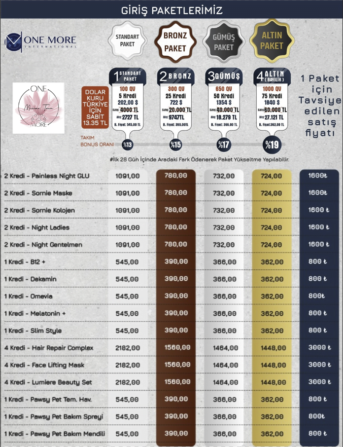 Yukarıda açıklamış olduğumuz gibi One More İnternational klasik network marketing sistemlerinden farklı olarak 9 farklı alanda size değer verir ve yanınızda olur..